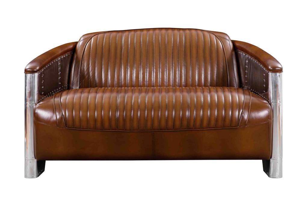 Ce canapé au châssis en hévéa massif recouvert de plaques d’aluminium rivetées séduit par son style authentique.