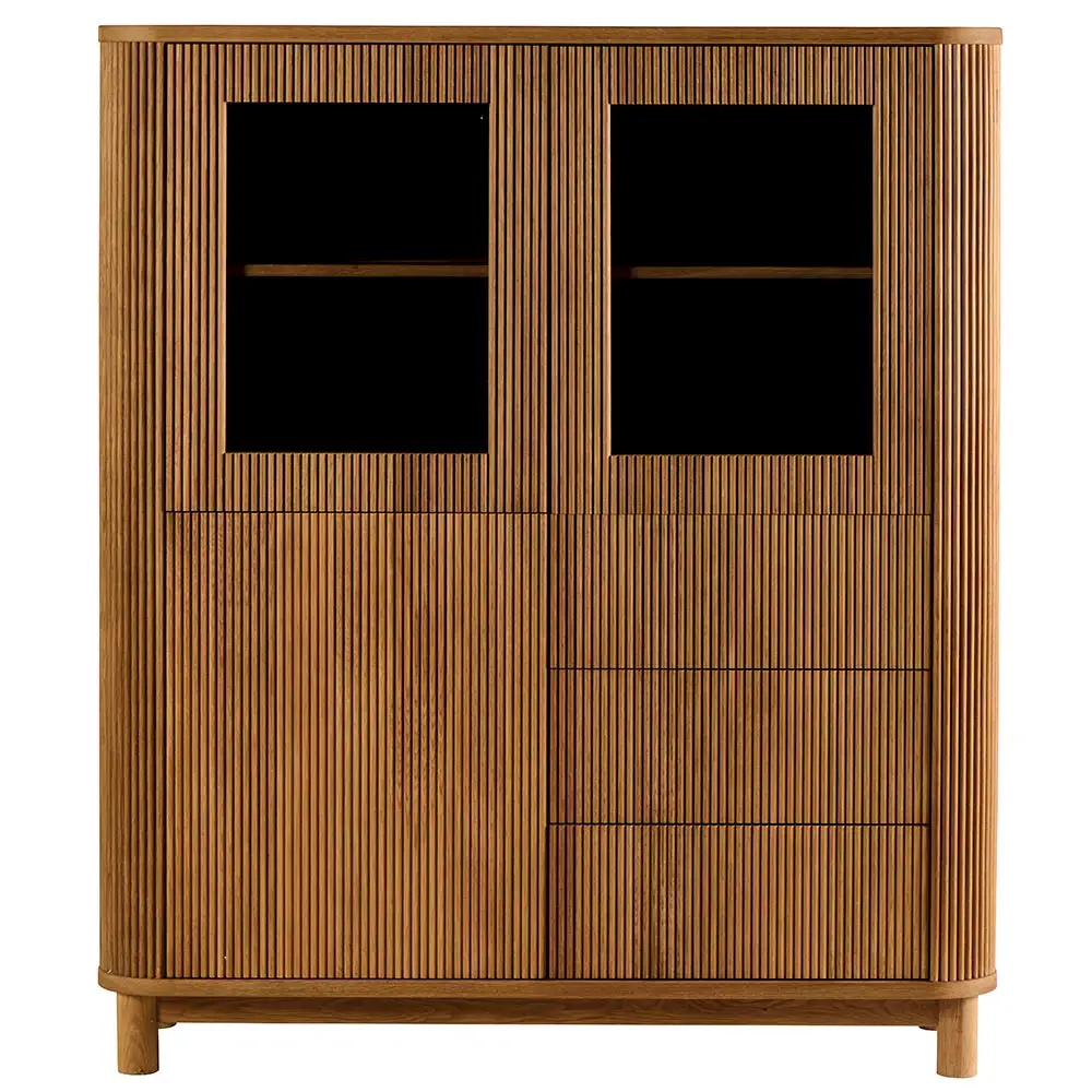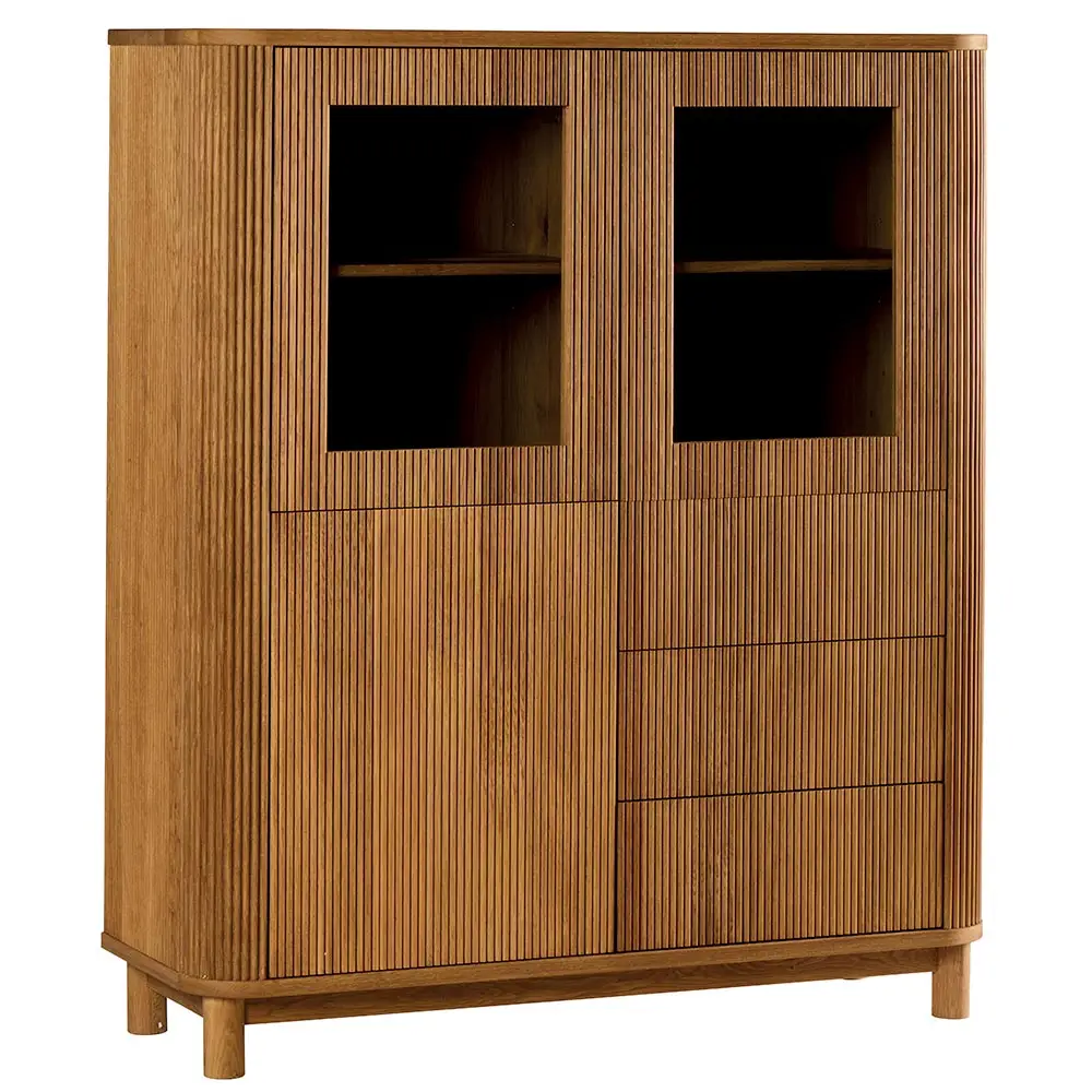 3 portes dont 2 vitrées, 3 tiroirs.